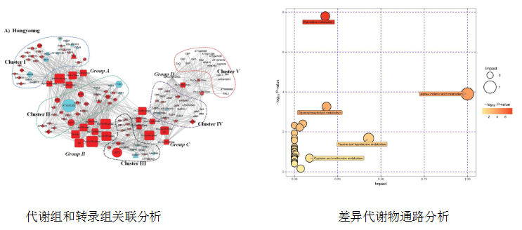 ??????生物體的表型由?DNA、RNA、蛋白質及代謝物等各個層面調控決定,mRNA?研究可以獲得樣本之間差異基因、復雜調控網絡,而基因與表型不能直接關聯(lián),難以鑒定控制關鍵途徑的結構及調控基因,結合代謝組,輔助時序表達的眾多基因進行”共表達”分析,揭示基因功能,并將基因與表型關聯(lián)起來,快速鑒定核心調控網絡,確定關鍵候選基因。