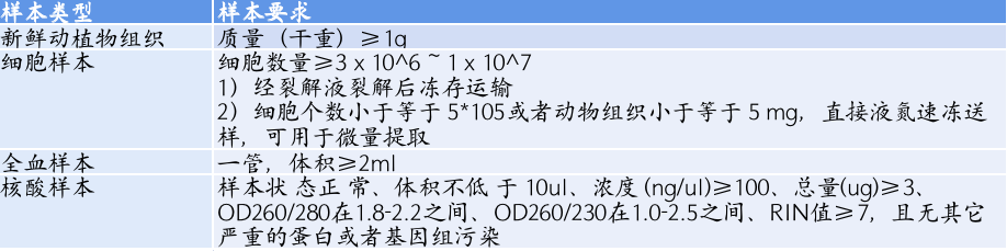 答:LncRNA測序產(chǎn)品可以對動植物、全血、細(xì)胞等組織或者核酸樣本進行測序,分析要求需要有對應(yīng)物種的參考基因組,具體的送樣指導(dǎo),請參考如下內(nèi)容: