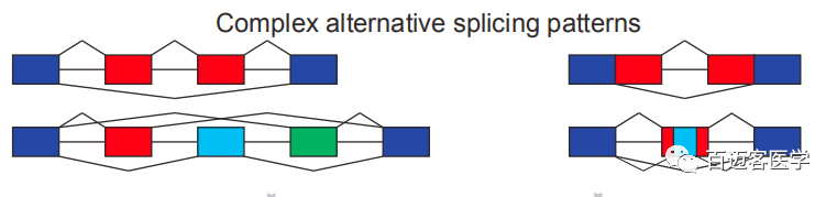 注:上圖列舉了由于復(fù)雜剪接模式形成的復(fù)雜轉(zhuǎn)錄本。–[ref4]