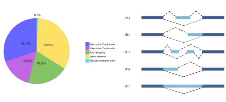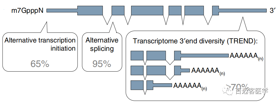 • 人類中約95%基因存在可變剪接AS事件、70%以上基因存在APA現(xiàn)象[ref3]。AS、APA和fusion等是轉(zhuǎn)錄本多樣性以及蛋白多樣性的來源,多樣性轉(zhuǎn)錄本或蛋白發(fā)揮不同功能。